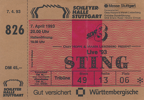 1993: Sting performed at the Festhalle in Frankfurt, Germany.